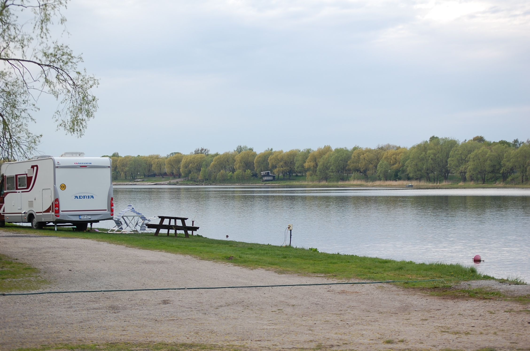 Det blev via Neu Branderburg av den enkla anledningen att det blev en bra dagsetapp. Reisemobil International Bordatlas som vid det här laget blivit vår husbibel sa att vi skulle bo på en ”ställplats” som samtidigt var stadens småbåtshamn. Ja, mysfaktorn var låg, men rent var det……