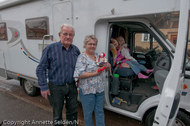 Så här har ser ni mig tillsammans med Rolf och Gunilla. Tyvärr, så kunde dom inte överta mig, då deras husbil ännu inte var påställd, så jag fortsatte med HBK 1356!