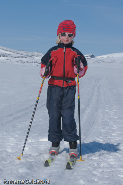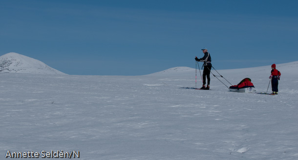 Idag har jag fått följa med på en riktigt lång tur ut på fjället. Vi har åkt Veslefjell runt, en sträcka på 1,5 mil. Thilda åkte själv på sina skidor hela vägen, och jag satt och gottade mig i pulkan med min vän Hippo, en ljusblå flodhäst i plysch.
