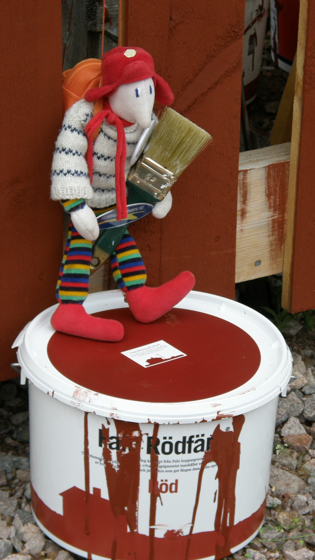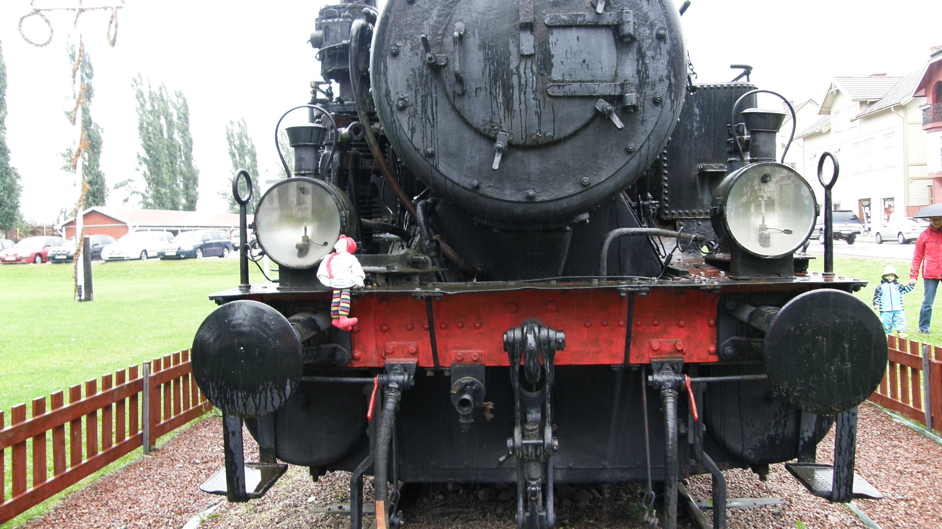 Nu ska jag berätta vad jag har varit med om under dom här dagarna hos Åke och Wania 65. Hianders lämnade över mig i söndas, i måndas blev jag satt på jobb. Först fick jag hjälpa Åke och snickra på hans husbilsgarage och sen var det dags att måla. Phu! På tisdagen åkte vi iväg, då fick jag sitta framme vid deras GPS och hjälpa till att hitta vägen. Vi åkte först till Vansbro för dom skulle hitta nåt vid ett gammalt ånglok, dom håller på med Geocaching, det verkar spännande och kul. Åke hittade snabbt cachen och jag fick provsitta på loket - ojjj va spännande!