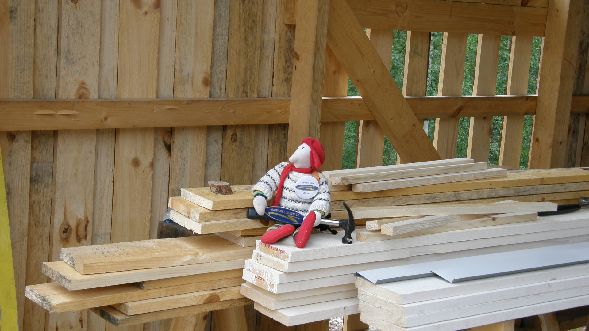 Jag glömde berätta en sak, jag har fått en kompis till, hon heter Murmeldjuret. En sak är jobbig med henne, om man råkar trampa henne på foten så börjar hon joddla som sjutton, så jag får passa mig.