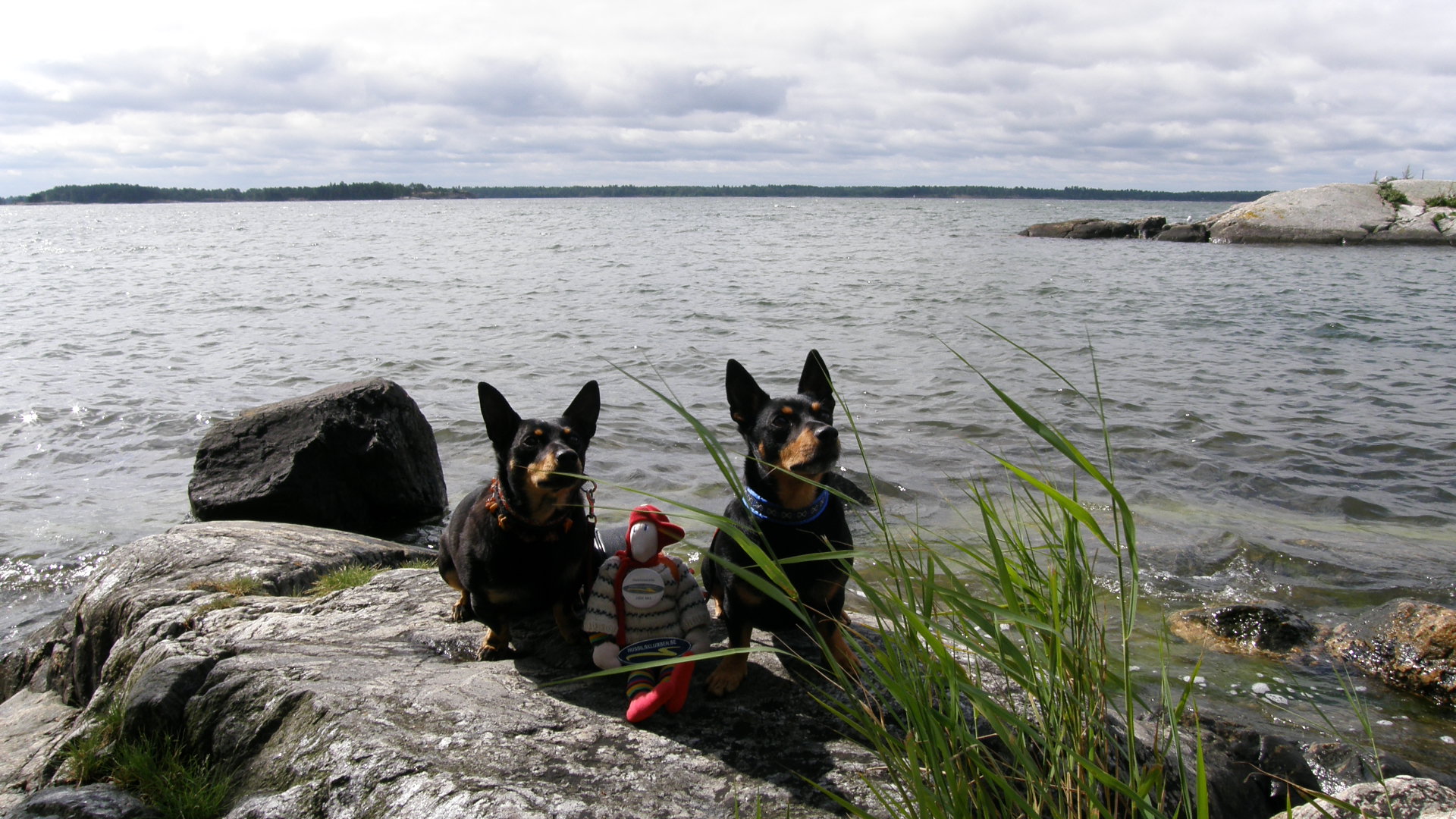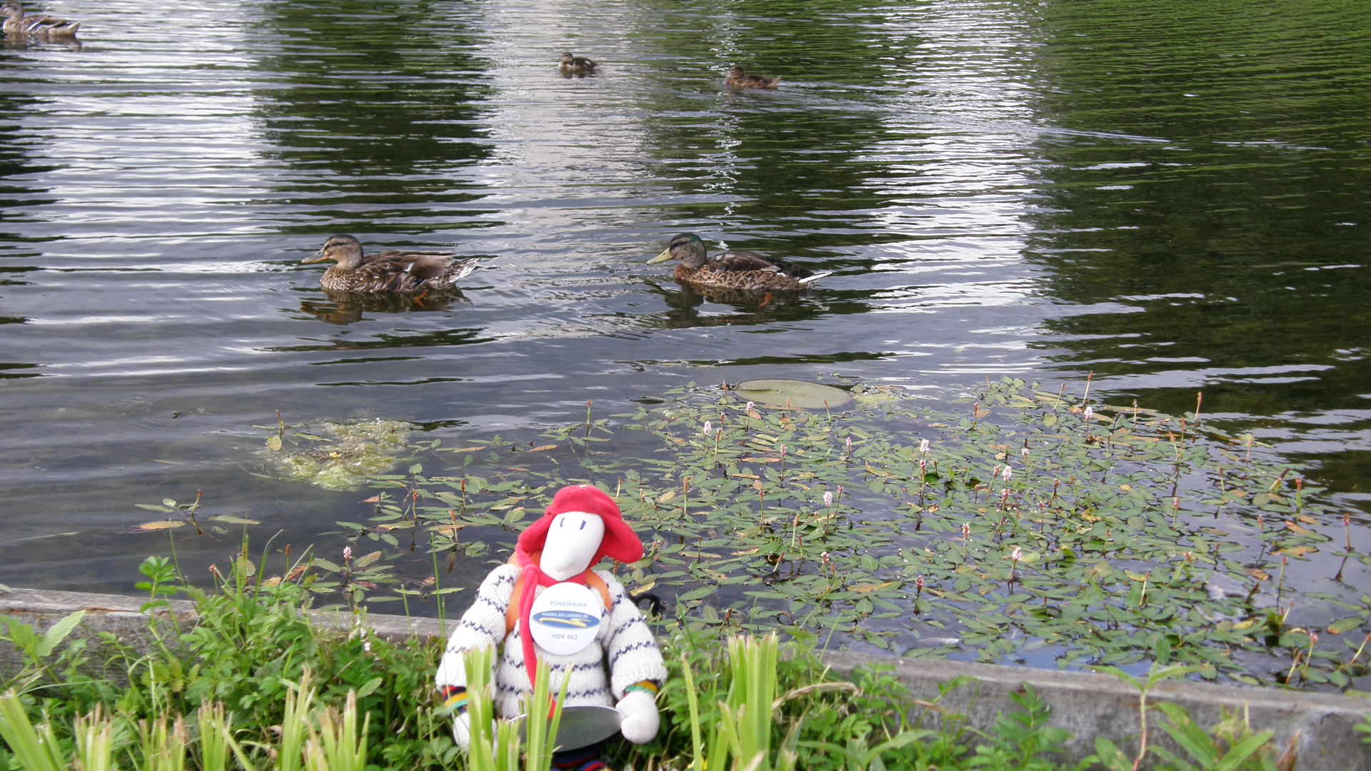 Nu har vi kommit till Trosa. Vi har åkt efter Bråviken och letat cacher, tänk så många fina platser vi har sett. I Nävekvarn gick vi ut på en liten holme, där fick mina kompisa Valle och Frasse bada. Sen åkte vi till Nyköping, det var en mysig stad. Jag fick sitta i ryggsäcken medan vi vandrade runt i fem timmar och träffade många trevliga människor som undrade vem jag var. Kul! Väldigt kul, tur att jag fick följa med hit. När vi var där så träffade Åke och Wania på några kompisar från Oskarshamn, Bernard och Hjördis 189 och Tommy och Annelen 205. Vi följde med dom till Trosa, här står vi nu nere vid hamnen bland alla tjusiga båtar, jättefint väder.
