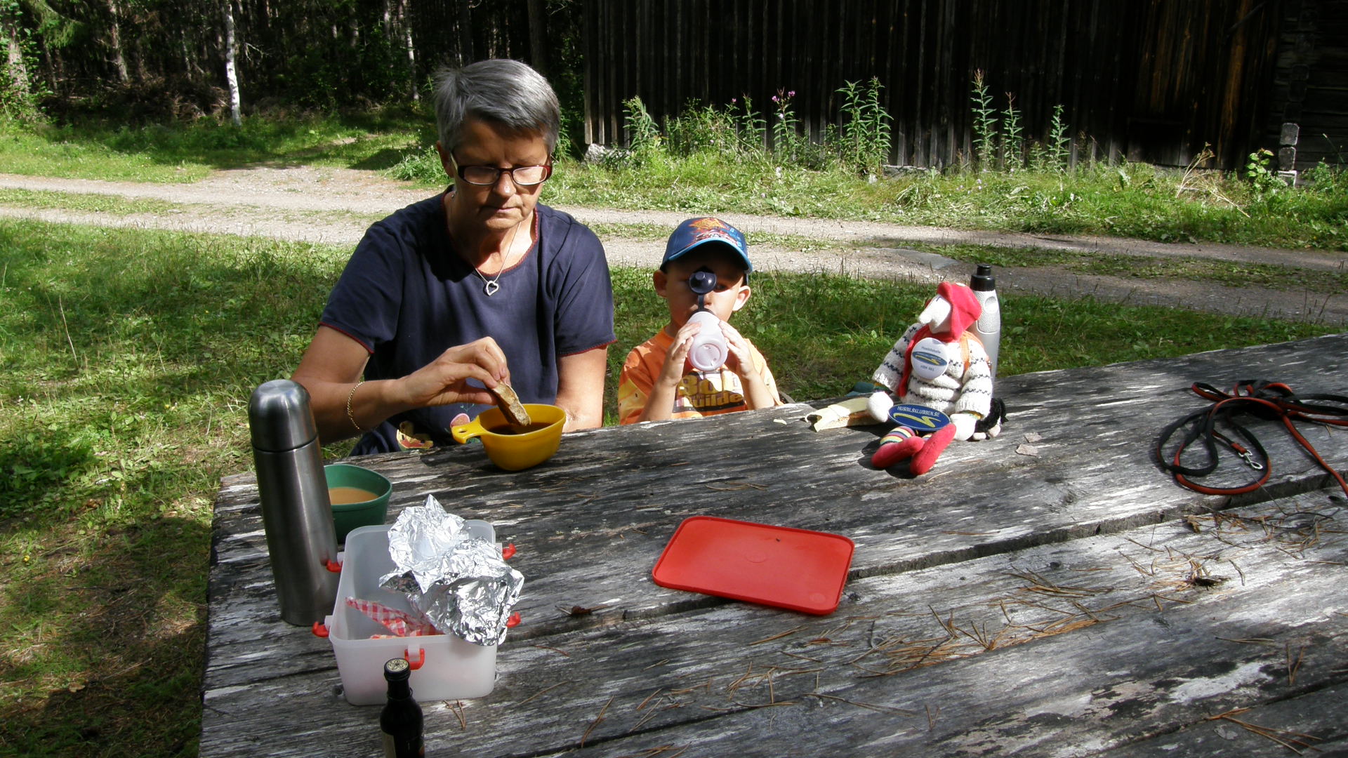 Vi letade cacher och så hade vi fika med oss och fikade i skogen, det var mysigt.