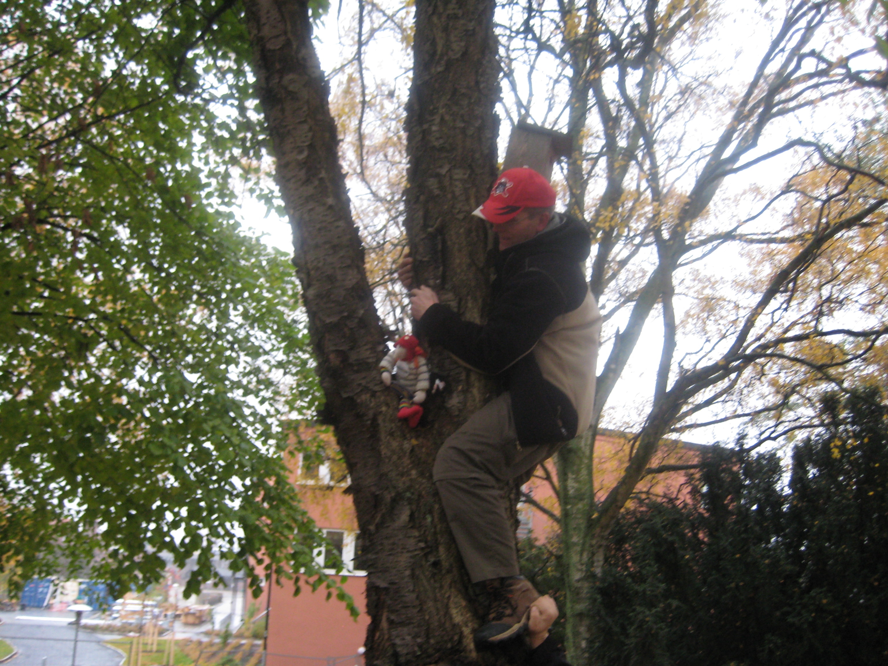 idag blev det også klatring op i et træ, jeg kom først og måtte sidde længe og vente indtil Michael endelig kom op, men så fandt vi også cachen.