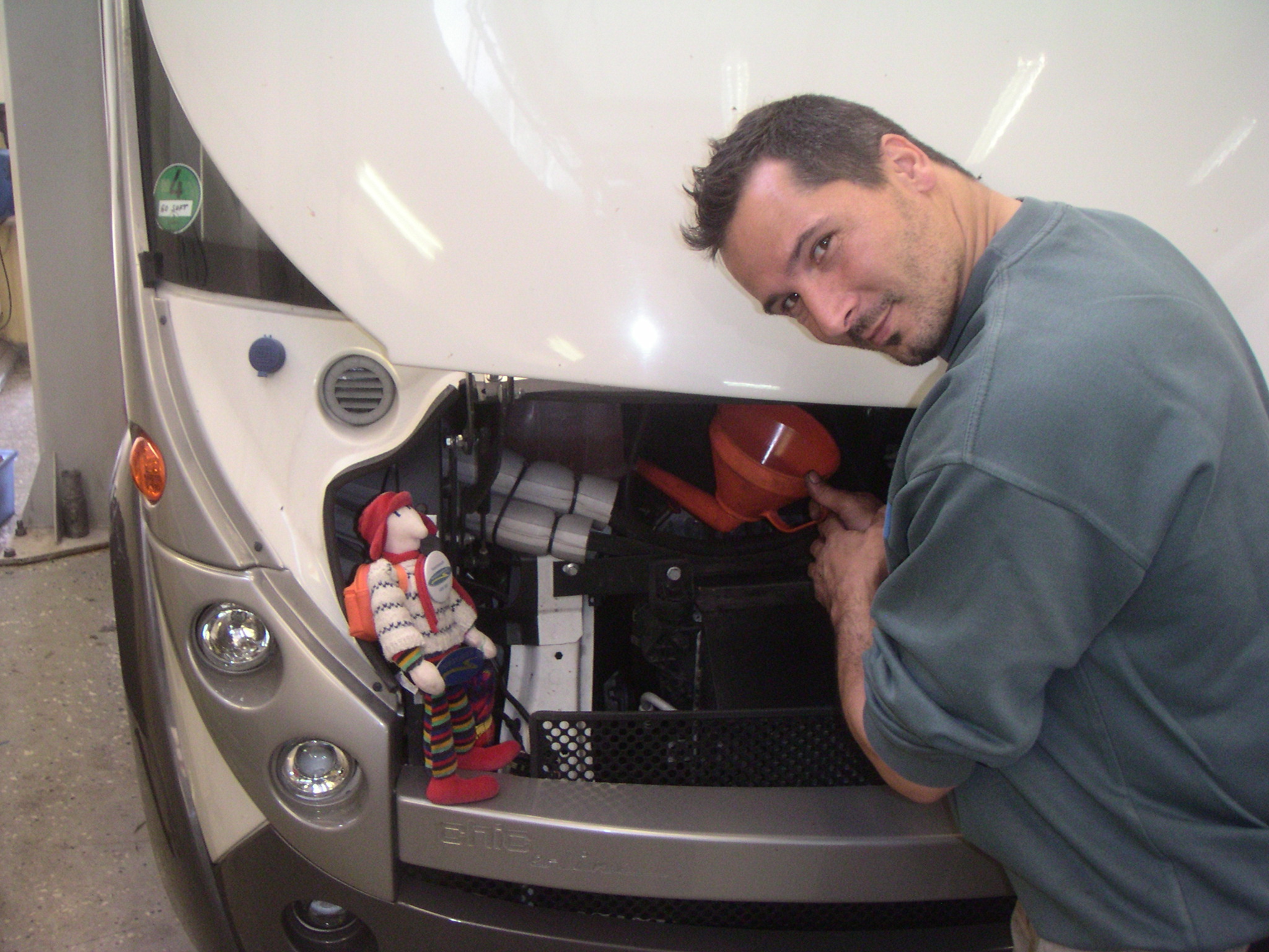Här kollar jag när han byter olja.