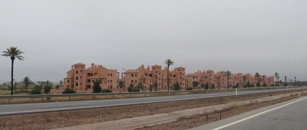 Hela vägen från Torrevieja till la Manga var det mängder av urbanizacioner av alla de sorter, den ena fulare än den andra. Man kunde ana det moriska inflytandet här och var liksom lite andra influenser som var mera svårdefinierade. Inga människor och ingen rörelse i dessa områden gjorde att de såg ut som spökstäder och tittade man närmare på byggnaderna så verkade inte byggkvalitén vara särskilt hög! Ett förött kulturlandskap kan man tycka.