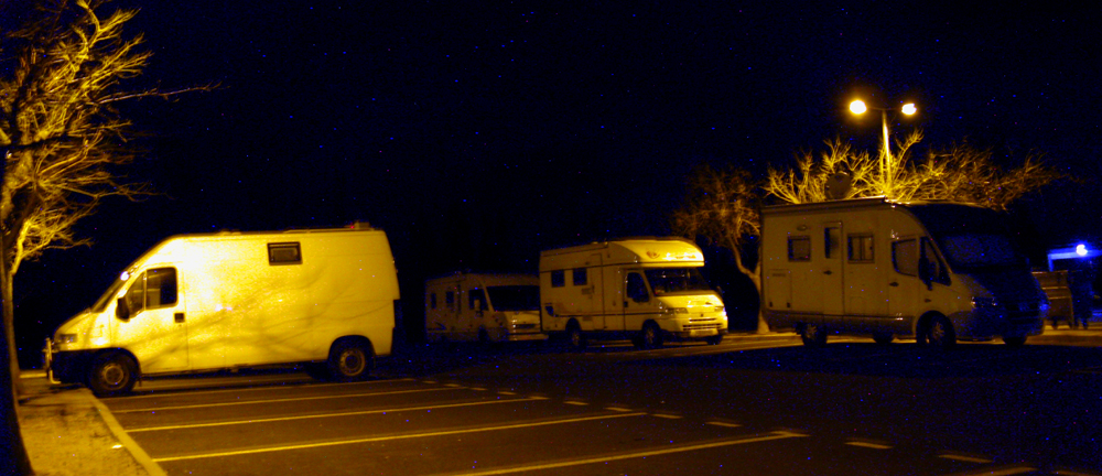 I morse när jag vaknade fick jag världens överraskning. GB hade kommit i går kväll vid midnatt till Girona flygplats och sedan hade Jappe kört över till Frankrike. Vi befann oss på en jättebra parkeringsplats c:a 2 mil från gränsen vid hotellet i Aire de Village Catalan en bit ifrån där alla långtradarna stod och brummade så det var lugnt och stilla. Men det regnade hela tiden.