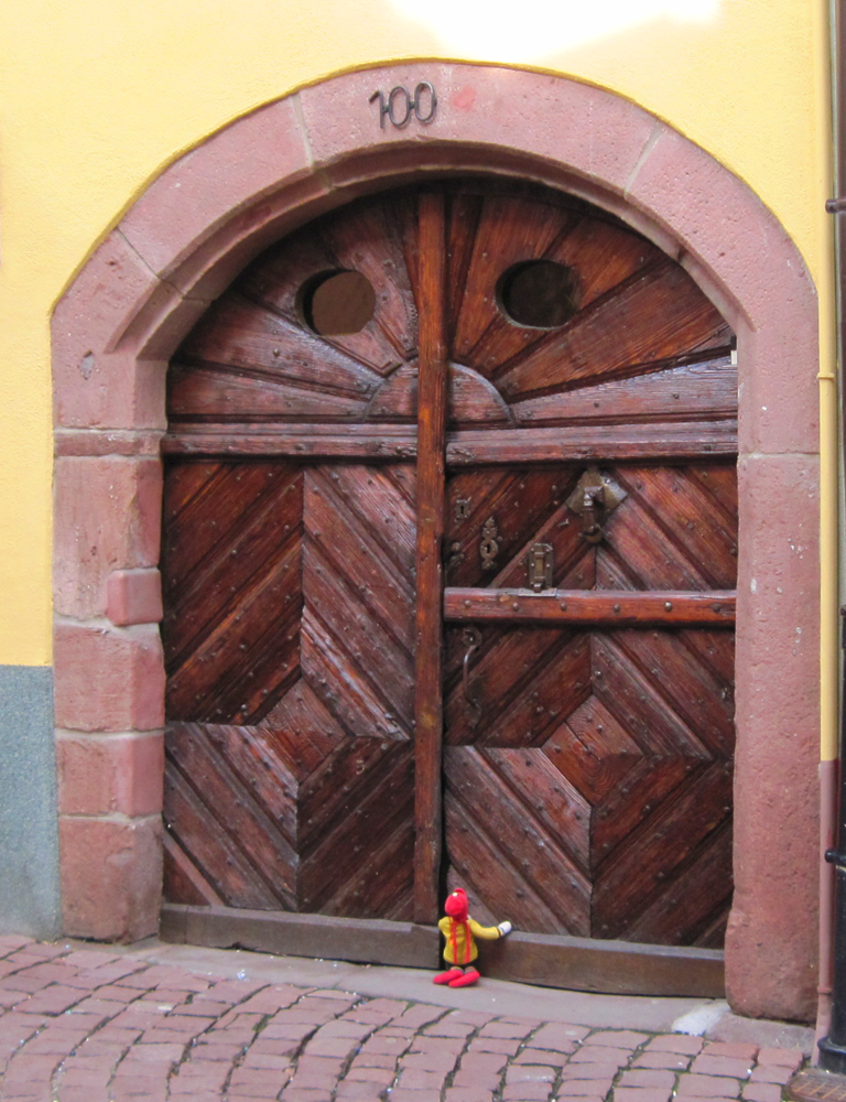Ett av husen hade en så stilig port och jag tänkte smita in där och leka kurragömma men det var ingen som öppnade trots att jag bultade ihärdigt.