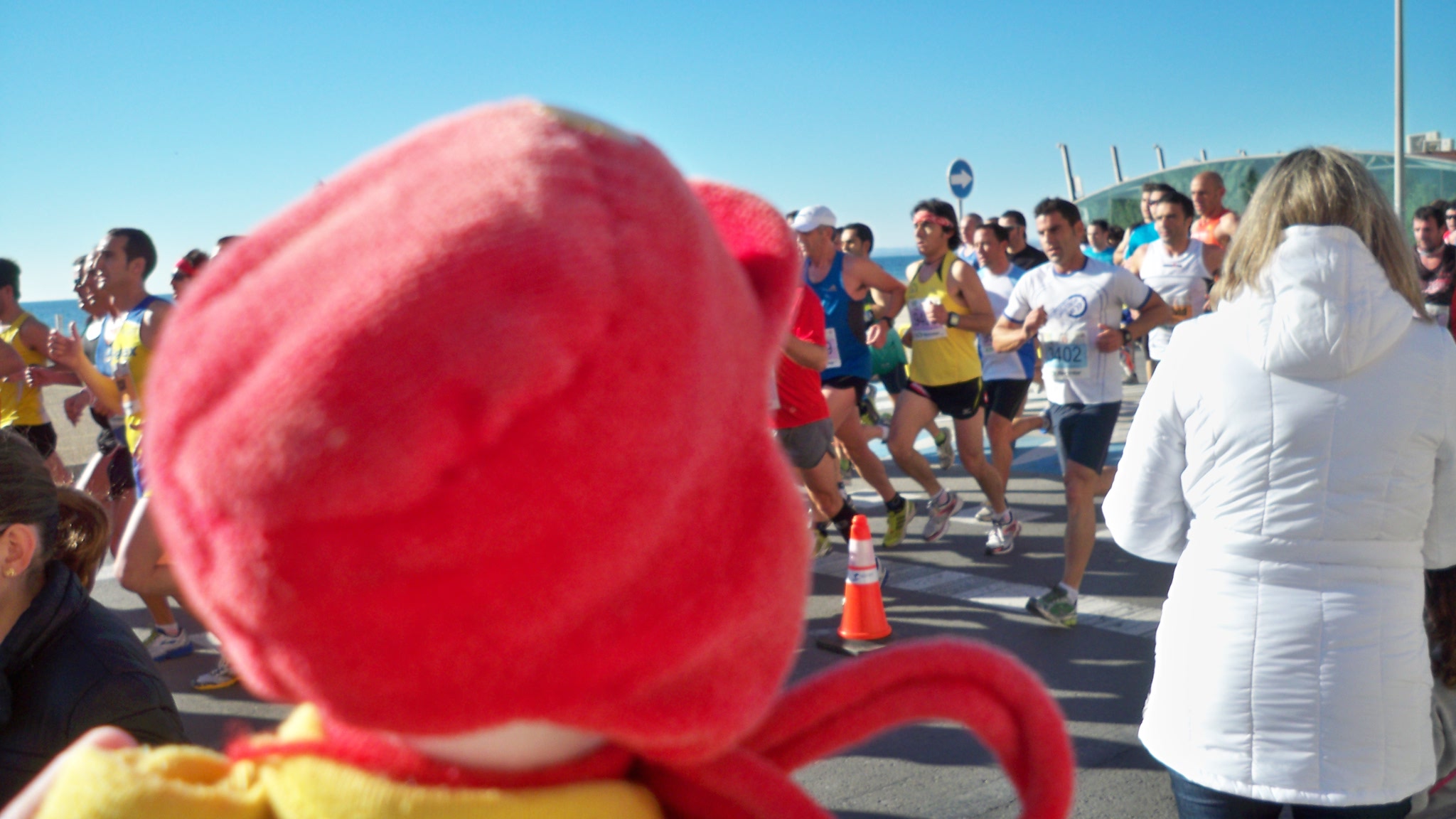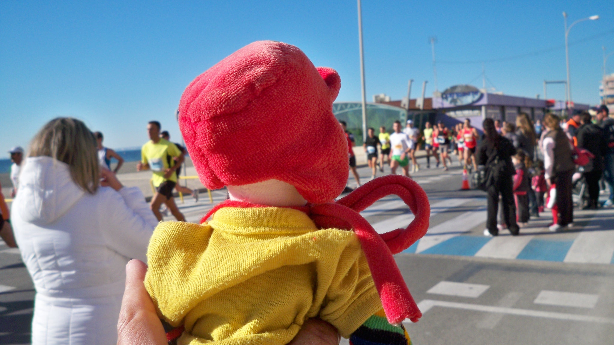 Det var jobbigt att springa Marathon tänkte jag skriva men vi var faktiskt bara åskådare. Gunilla sa åt mig att flytta på mig så man kunde visa de som sprang. Förlåt men mössan tog upp bilden.