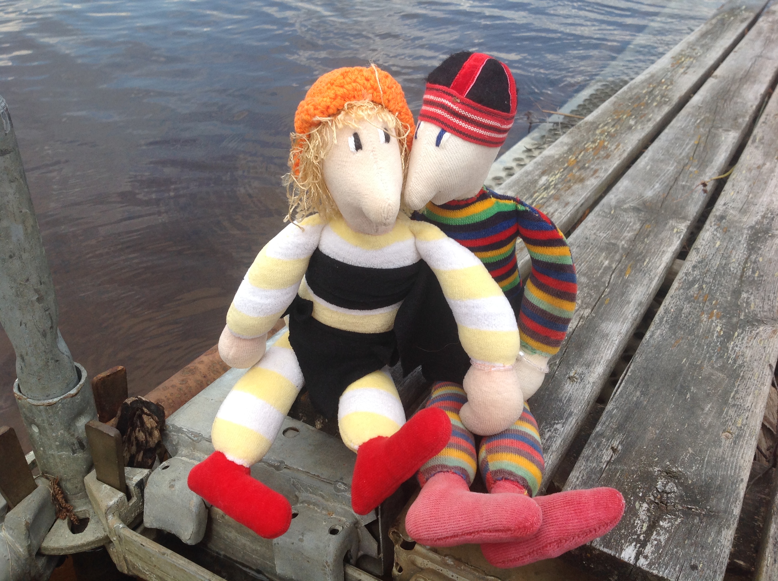 Och så har vi fått våra nya badräkter som vi invigt idag med premiärbad i Årbosjön. Det var lite kallt i början och jag ville inte först men jag kunde ju inte visa mig feg inför Carla. Hon beundrar mig så och tror att jag klarar allt. Och det gör jag ju!!