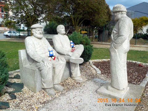 Vi var sedan i Foz där vi satt i knät på dessa gråa figurer men vi lyser desto klarare. Här spelade Hasse och Eva boule med Vivian och Mats, trevliga medlemmar i husbilsklubben.