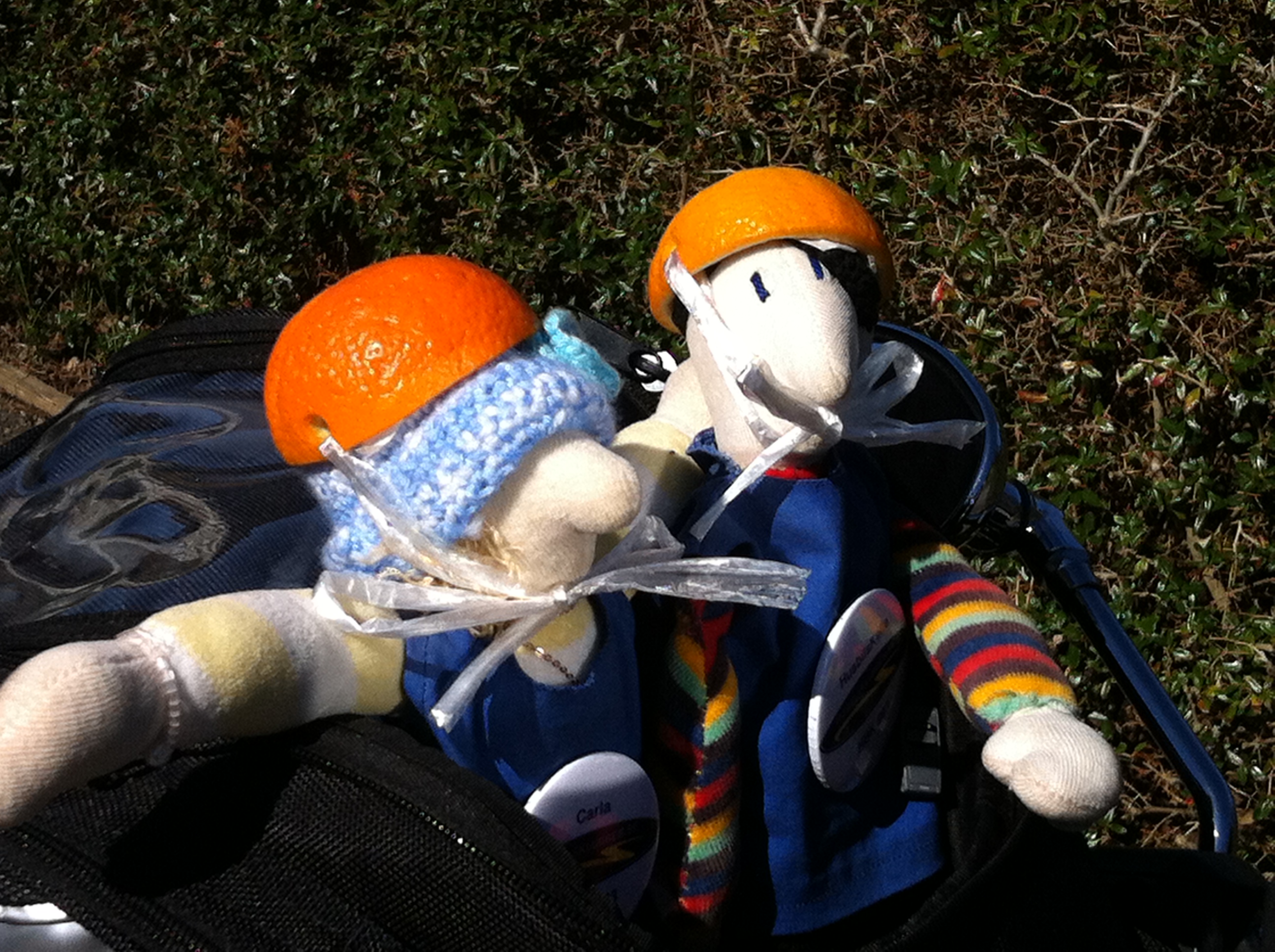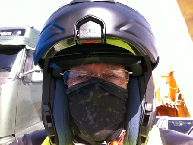 Robert envisas med att vi skall ha hjälm på oss. Va? ett apelsinskal.