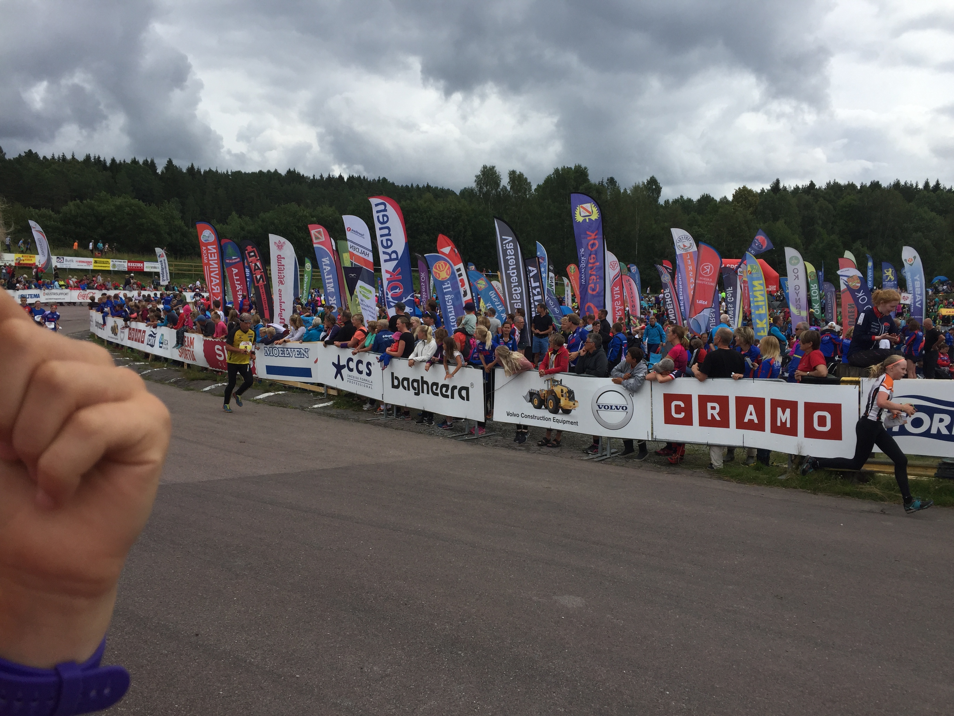 Något som jag måste berätta är hur häftigt ljudet är från tusentals orienterare när de går på asfalt, de har ju spikskor och det låter så kul när de går och särskilt när de är så många!