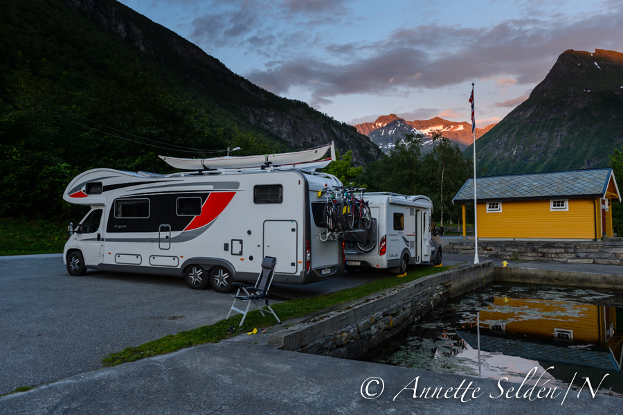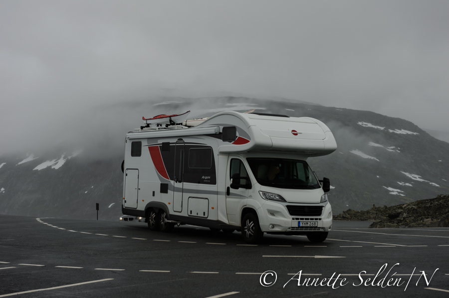 Vi körde ända upp på en fjälltopp som heter Dalsnibba, 1500 meter över havet och med fantastisk utsikt över dalen och fjorden! Men det var jättekallt där uppe så det var skönt att hoppa in i husbilen igen!