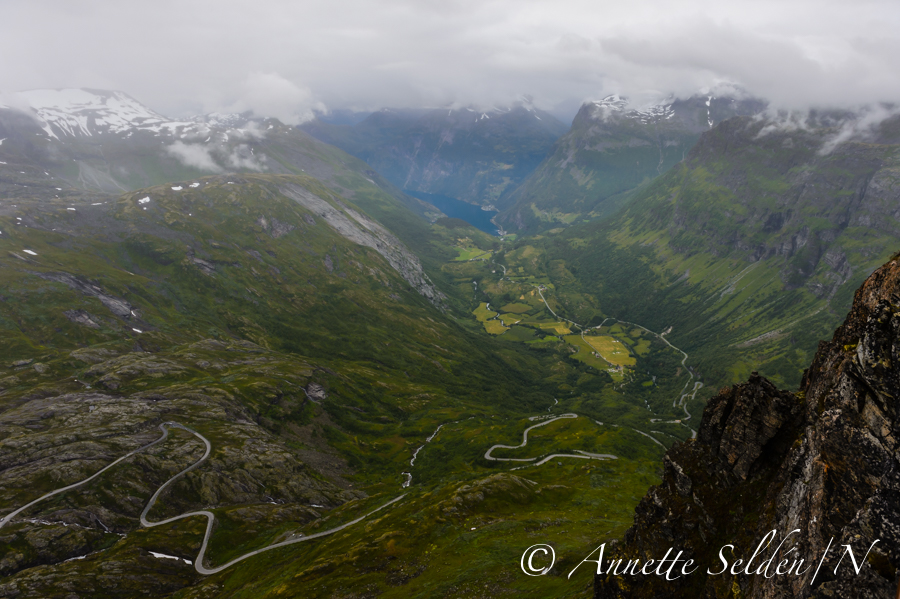 Färden går vidare och vi körde en hiskelig väg över stup och branta fjällvägar. Örneveien och ner till Geiranger och sen upp igen, hualigen vad smalt och brant det var!