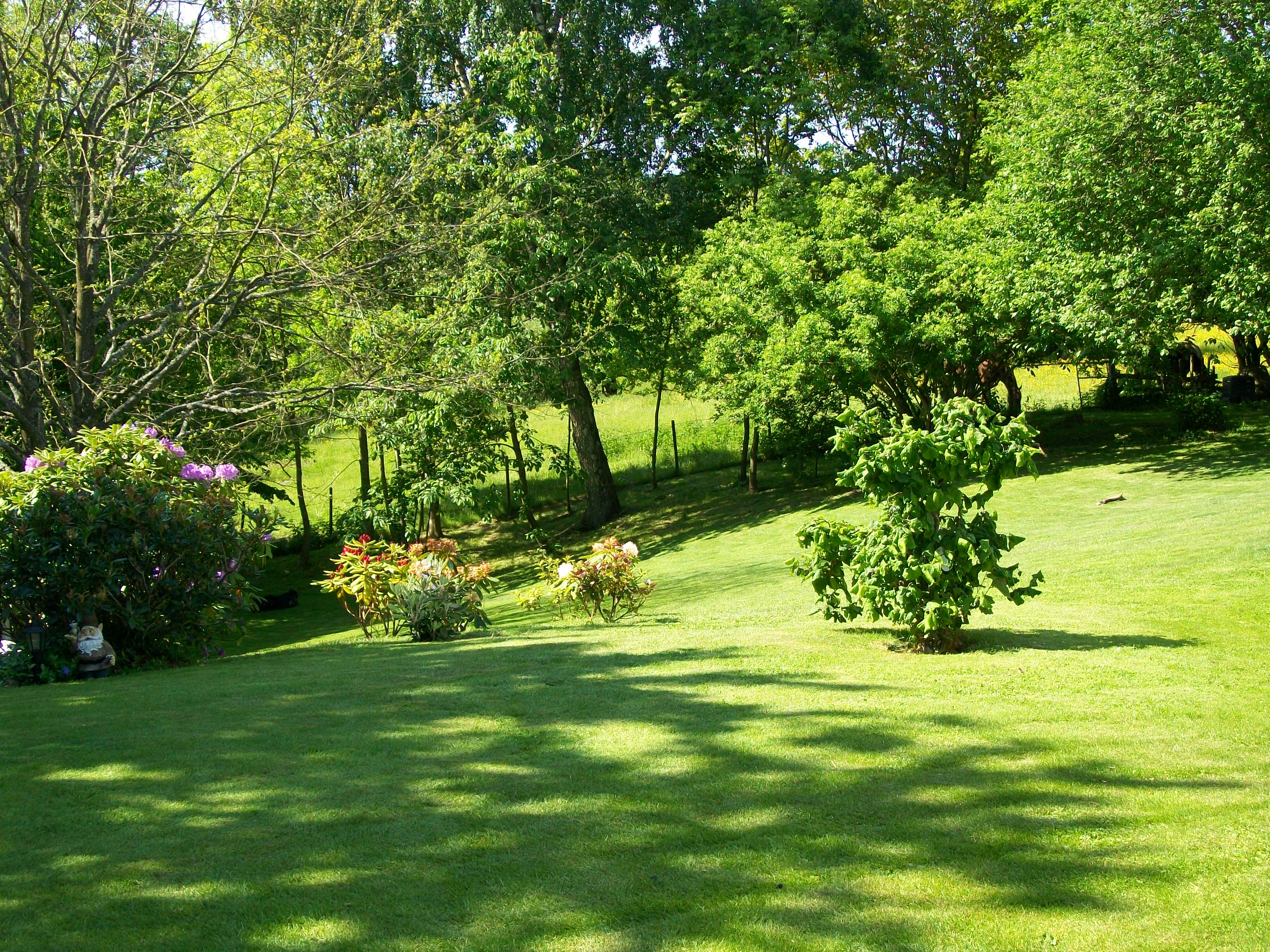 Just nu går man i väntas tider, på att få veta när vi får komma och hämta vår husbil. Vad kan man göra när man bara väntar, jo i morse fixade jag med ugnen. Fy vad den var smutsig, nån potatisgratäng som hade pyst och det är inte mysigt att tvätta ur det. Nu är i alla fall det gjort, tänkte gå ut i trädgården och göra rensa lite ogräs om nu vädret tillåter det. Det kom en jätteskur precis! Det är ju skönt om allt är klart när man åker iväg så slipper man känna att man måste snabba sig hem för att ta handom allt det där tråkiga. Vi har nämligen en väldigt stor tomt, ca 2700 kvm och det är lite mycket nu när man har fått detta intresset med att vara borta med husvagn/husbil. Men vi kan inte tänka oss att flytta ifrån vårt underbara hus och tomt. Så det är bara att bita i det sura äpplet ibland och röja upp när man är hemma. Bilden visar en del av vår trädgård!