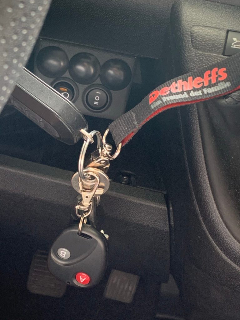 tänker jag när signalen tjuter för att trappan är ute när motorn startats och allt är klart för avfärd. Därför har jag nu löst detta på ett mycket smidigt sätt i vår husbil.