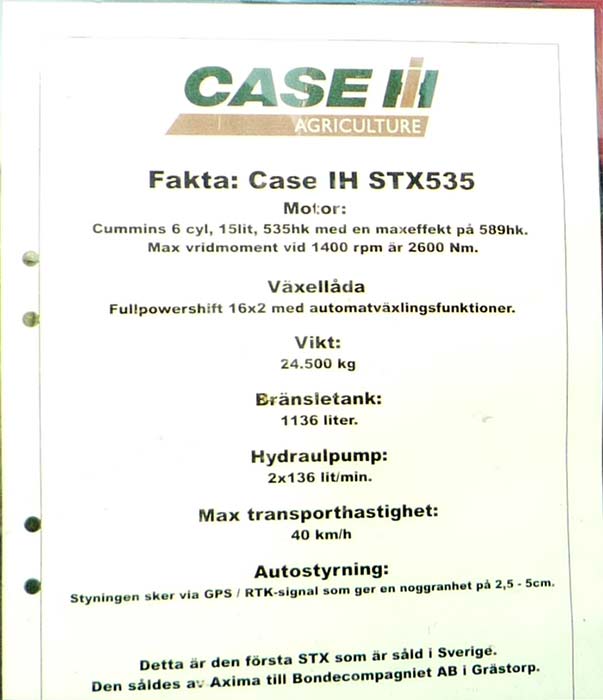 24 ton det kallar jag för traktor, men det mest imponerande var att man kunde köra med autopilot och navigera med GPS på 2,5 till 5 cm när det var därför maskinen körde med full fart hela natten på de stora ägorna runt Rånnum, tänk om vi hade detta system i våra husbilar och laseraravkänning så husbilen känner av trafiken så den inte kör på något, då skulle vi bara kunna gå upp på morgonen starta, knappa in ställplatsposition sätta på kaffet samt gå och lägga oss igen läsa morgontidningen och när bilen stannat gå ut och sätta sig i solen mm… Vilken framtid vi har.