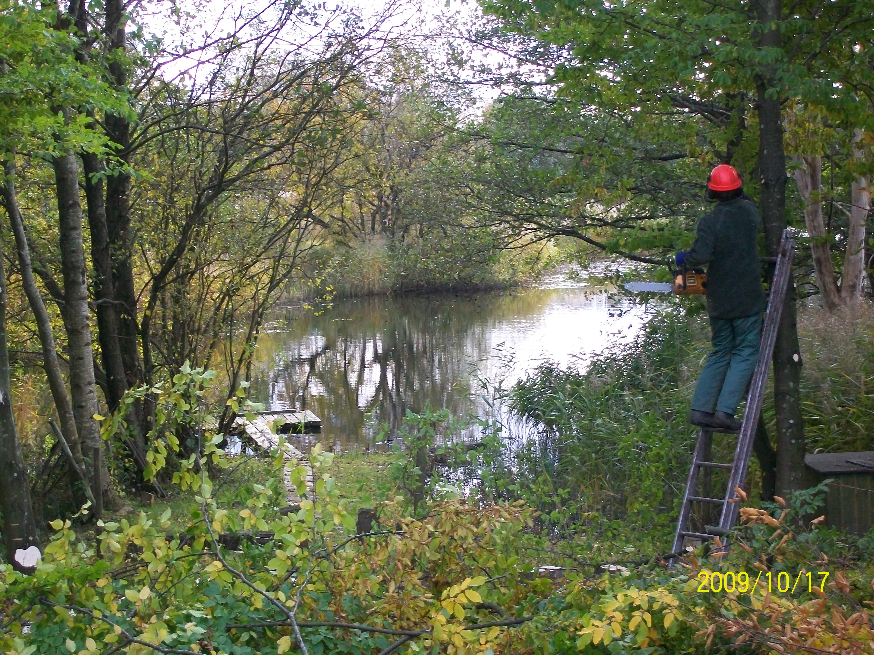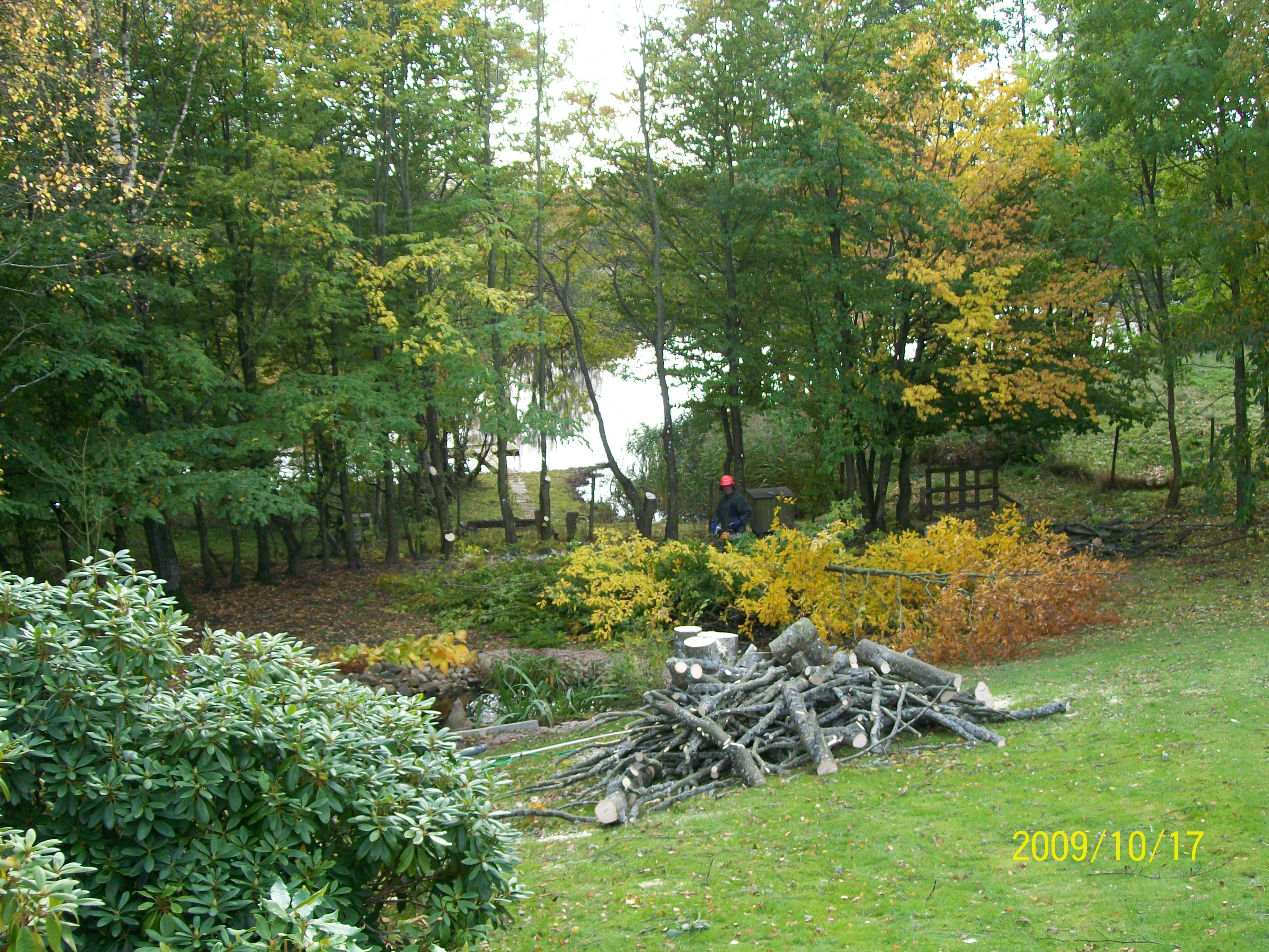 När det stora trädet var fällt så började vi med träden runt tomten nere vid sjön. Nu är frågan om vårt taxeringsvärde ökar med anledning av att vi har fått sjöutsikt